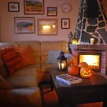 I rummen finns bland annat plattskärms-TV med satellitkanaler, strykjärn med strykbräda, strykutrustning och luftkonditionering. Förutom soffa har inredningen öppen spis. I badrummet finns en duschkabin och en separat toalett samt badlakan och handdukar.